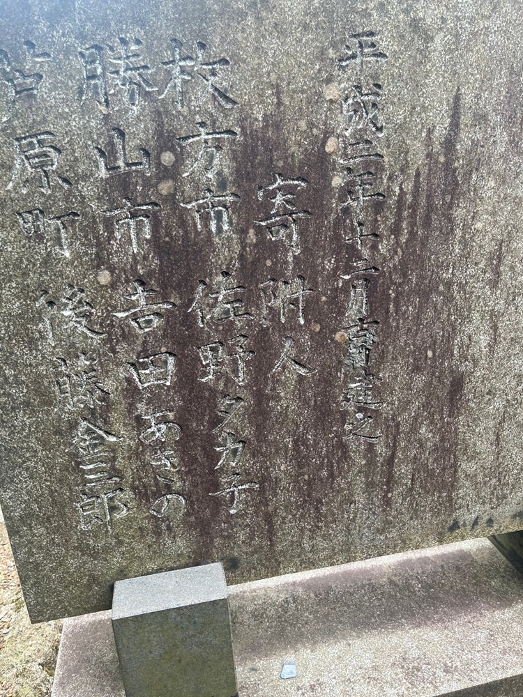 句碑が建立されたのは平成2(1990)年、後藤金三郎氏(林暁宇師、谷田暁峯師と昵懇・広大舎のご常連)、吉田あきの氏、佐野タカ子氏(池田勇諦師に師事・私も西恩寺様にてお育てに与った)の3名の発願によるものであった。脇には三上一英師の碑文もあり、経緯が刻まれている。