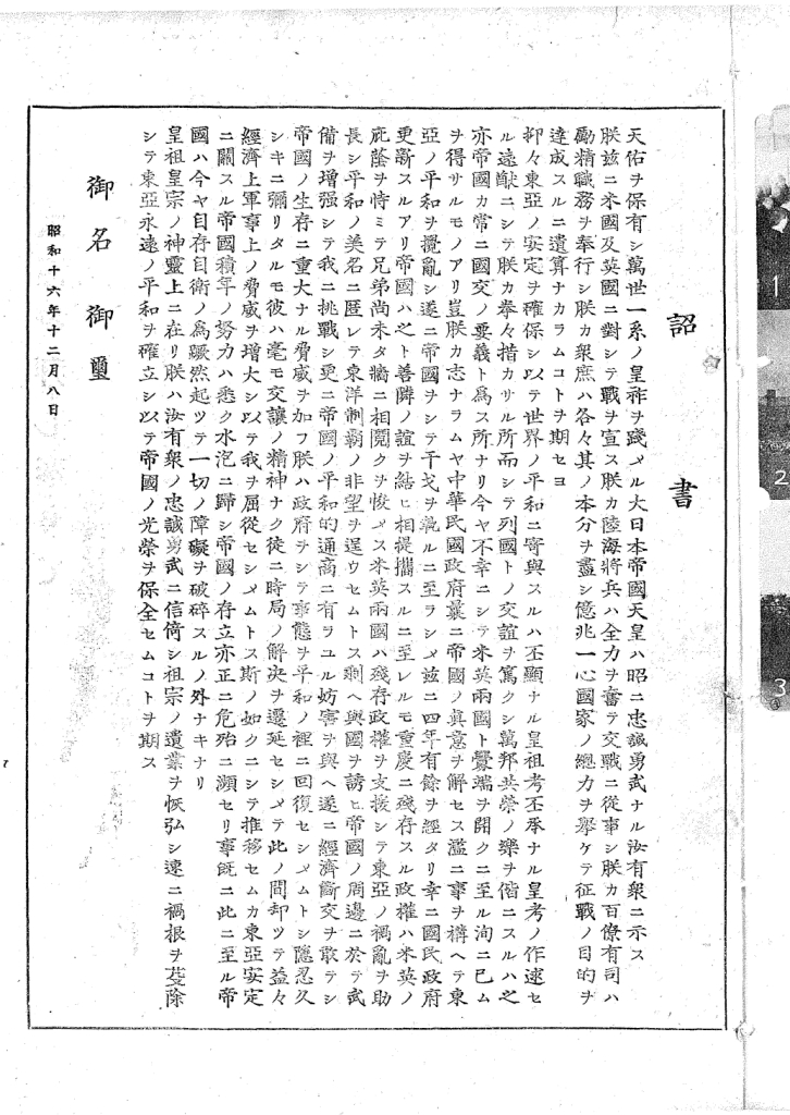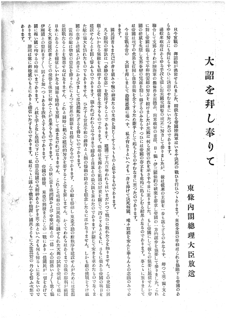 開戦詔書と東条首相のラジオ放送 「大詔を拝し奉りて」 を巻頭に掲載