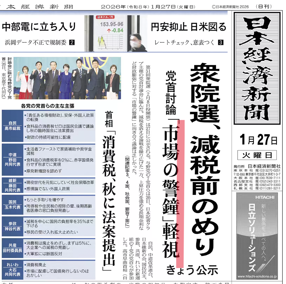 衆院選が始まったが、日本経済新聞が「減税ポピュリズム」との語を掲げ、再三警鐘を鳴らしている。与野党ともに、財源や効果も明らかにせず、「減税します!」のオンパレードである。
