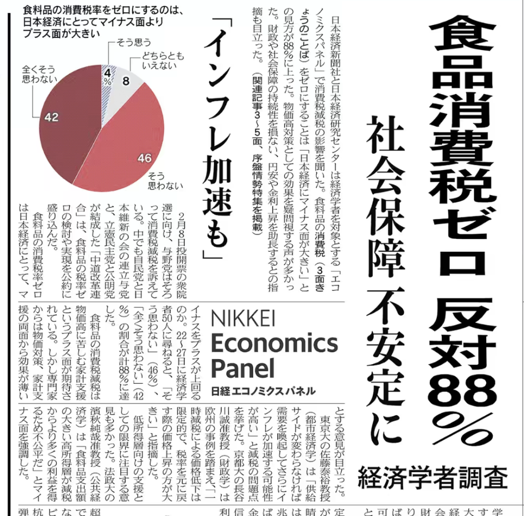 経済学者88%が「食料品消費税ゼロ」に反対